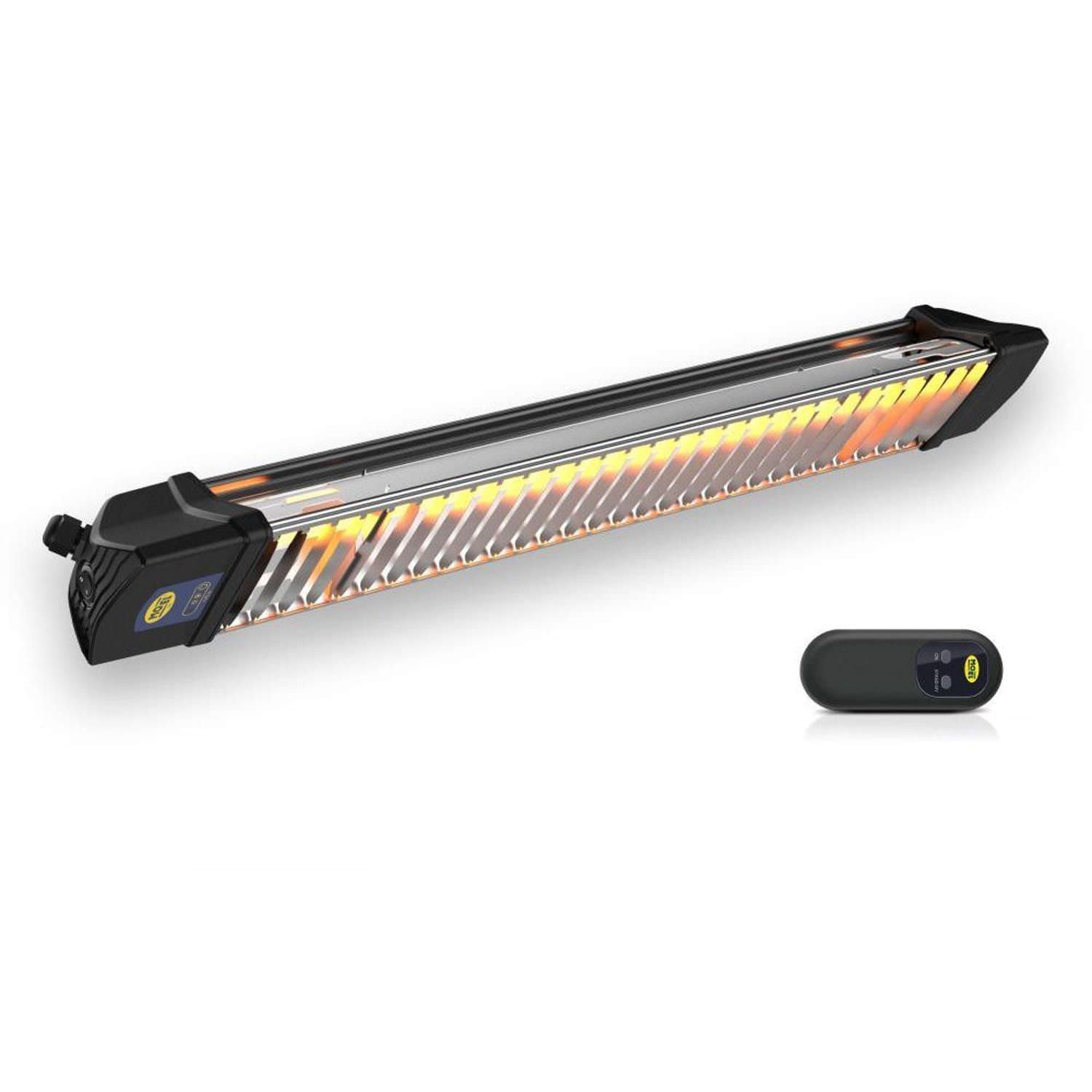 Riscaldatore a infrarossi ad onde corte per interno ed esterno con protezione IP65 Pannello a raggi infrarossi per montaggio a parete mediante il supporto a muro incluso Riscaldatore per esterni ed interni con Potenza 1200W dotato di Telecomando, Cavo con Spina Schuko e Catenelle di sospensione Radiatore da parete a raggi infrarossi con lampada tipo IR-A FROZEN al quarzo e tungsteno, durata 5000 ore Il riscaldatore Moel 866N ha una struttura in Alluminio e Nylon PA caricato con fibra di vetro – Colore Nero
