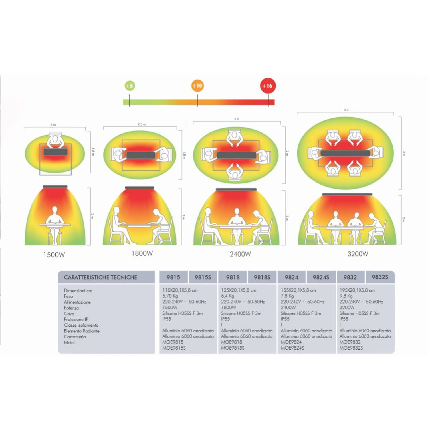 Adatto per il riscaldamento di ambienti domestici sia privati (appartamenti) che pubblici (ristoranti, pub). Gli apparecchi possono essere usati sia all’interno che all’esterno (patio, verande, balconi). L’apparecchio è dotato di elemento riscaldante a dopiia resistenza.