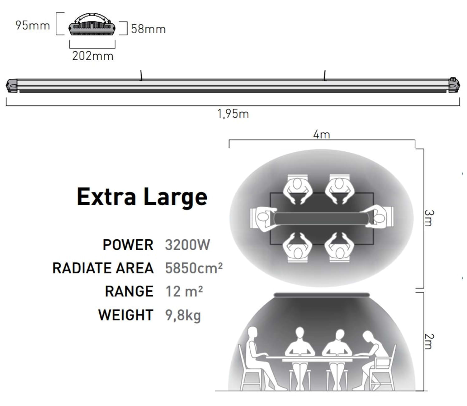Adatto per il riscaldamento di ambienti domestici sia privati (appartamenti) che pubblici (ristoranti, pub). Gli apparecchi possono essere usati sia all’interno che all’esterno (patio, verande, balconi). L’apparecchio è dotato di elemento riscaldante a doppia resistenza.